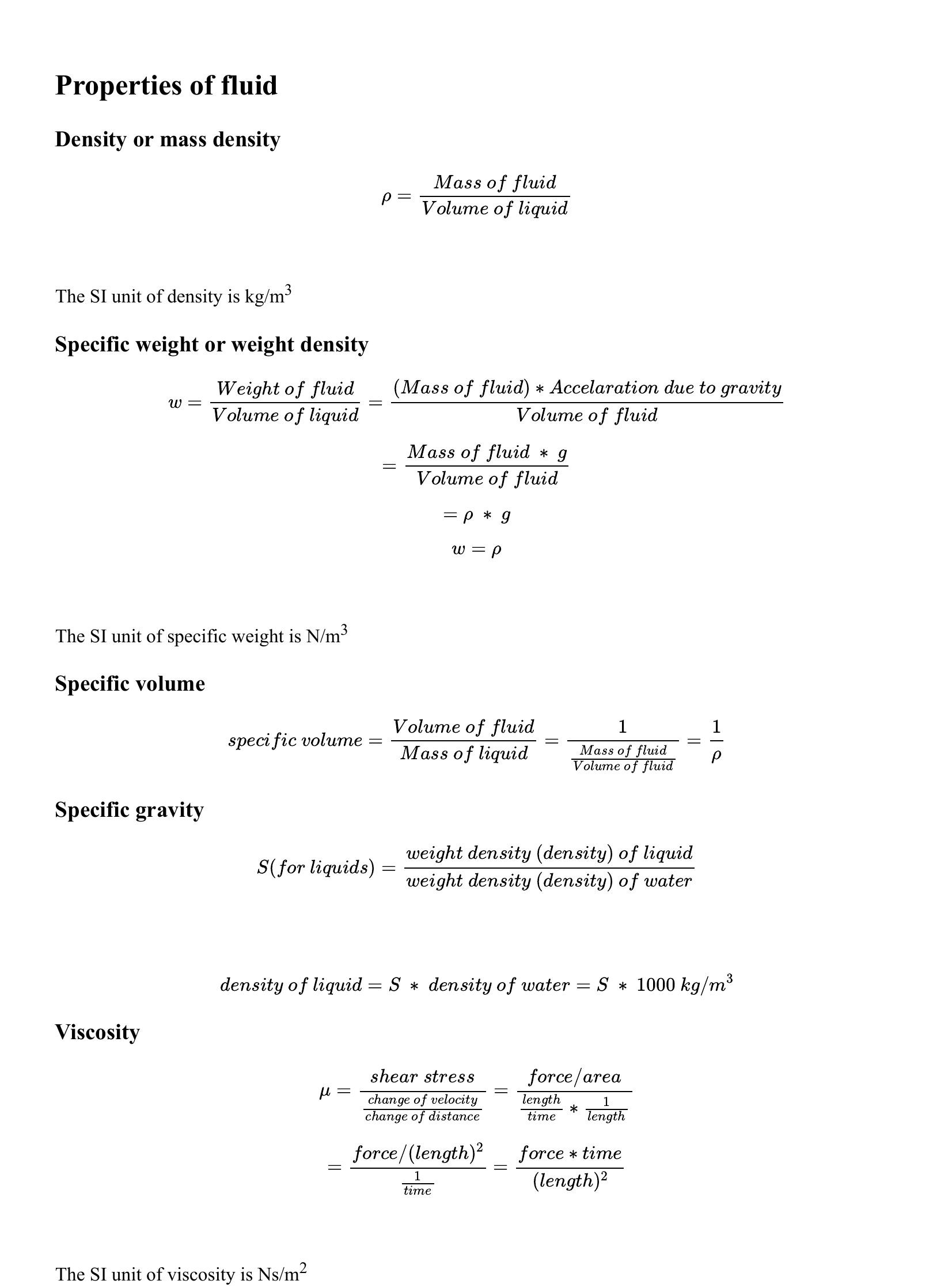 Fluid Mechanics - Fluid Properties