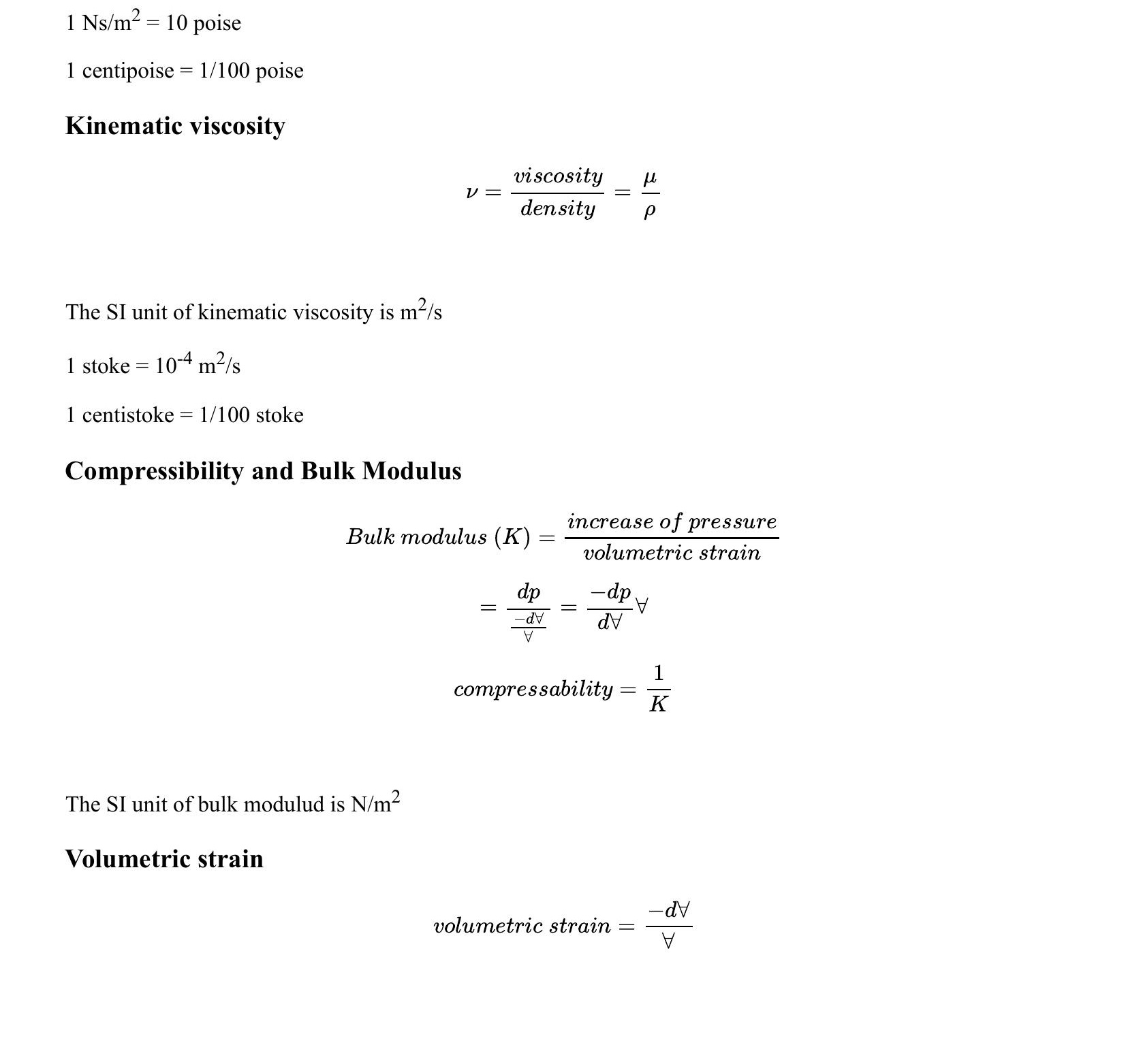 Fuid Properties: Bulk Modulus and Compressibility