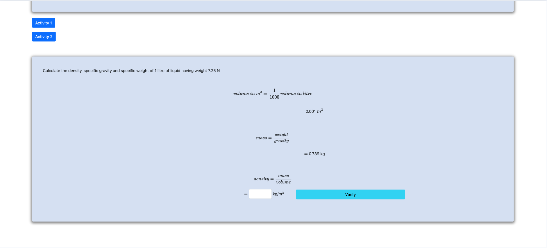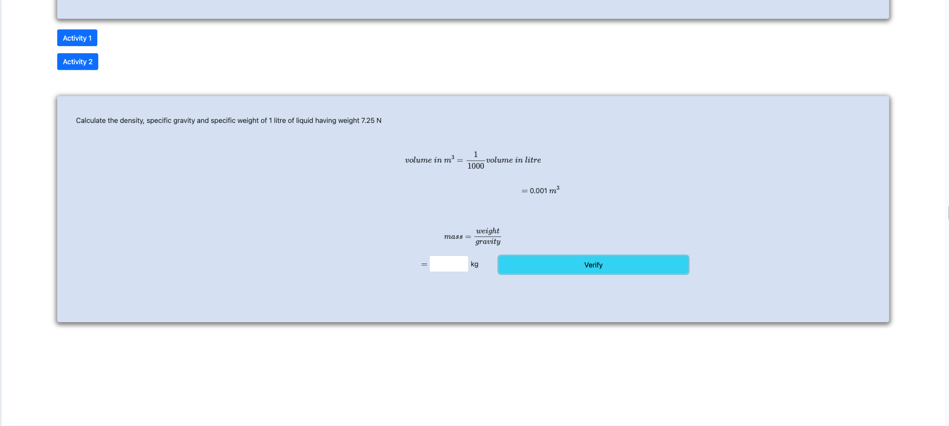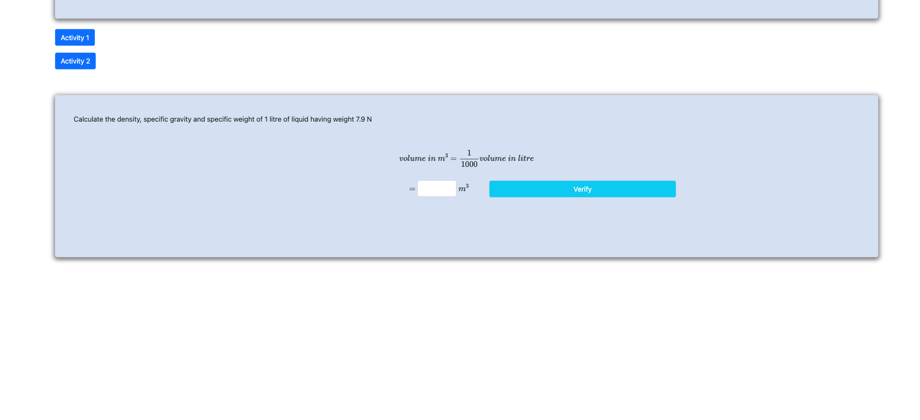 Step 4 : New problem statement appears, Calculate the volume in litres